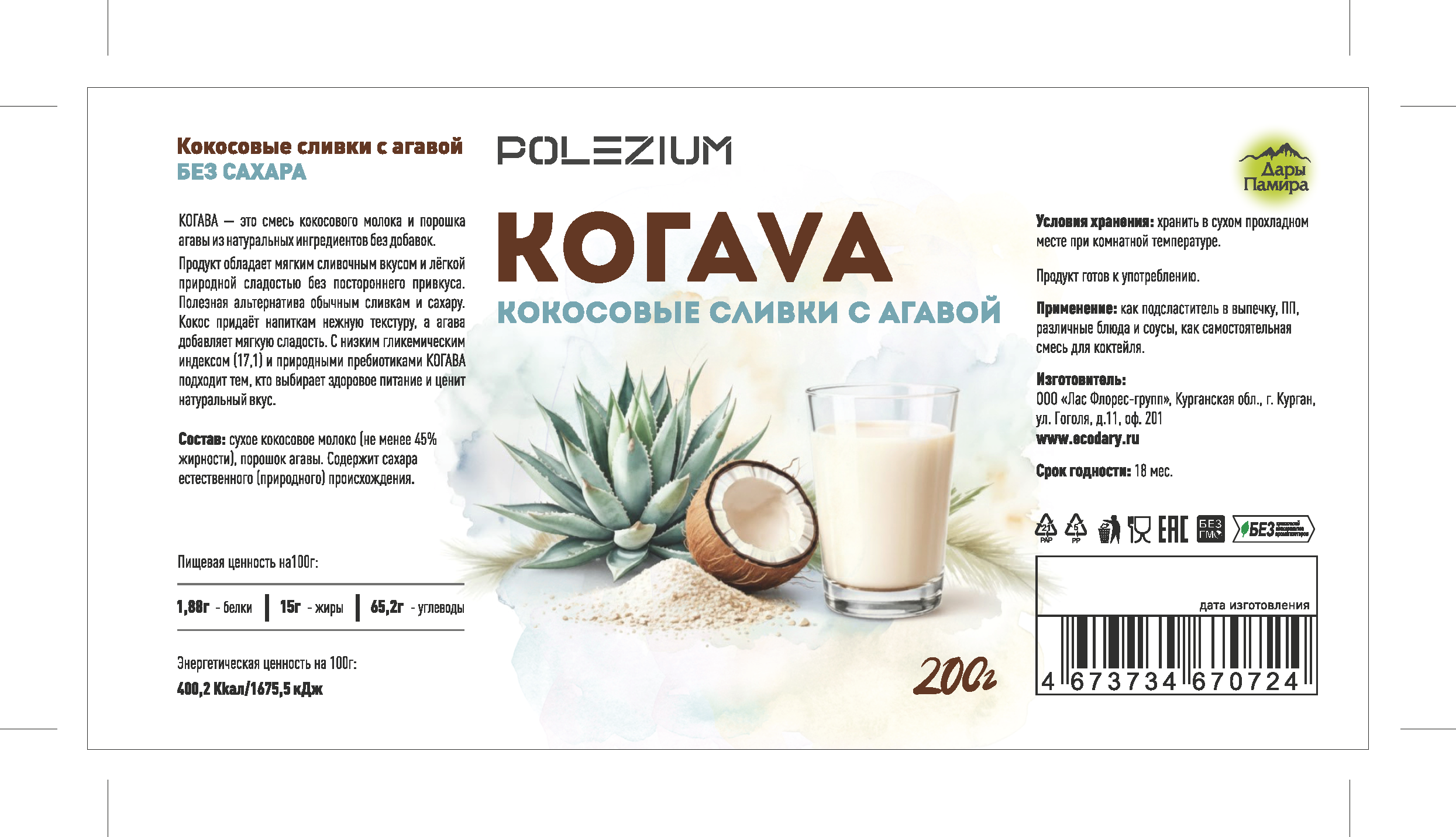 КОГАVА — кокосовые сливки с агавой (200 г)